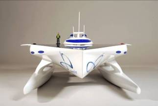 船的上方設有面積達500平方米的太陽能板,圍繞著中間凸起的駕駛艙。