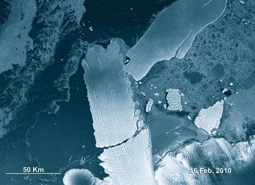據(jù)美國《連線》雜志報道,歐洲航天局“ENVISAT”環(huán)境觀測衛(wèi)星上裝載的綜合孔徑雷達拍攝到了南級巨大的冰山相撞的圖片。