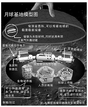 伯納德說,建設月球基地是一件極具挑戰性的事情,F在人類已經實現了太空飛行、登陸月球,我們已經掌握了在星球與星球之間短暫飛行的基本技術,F在到2020年,我們將會為月球基地的建立做好技術等各方面的準備工作,也許在不遠的2050年,我們會有幸目睹人類第一個月球基地的誕生。