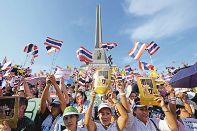 中新網4月19日電 據香港《文匯報》報道,泰國曼谷局勢再添變量。反前總理他信“人民民主聯盟”(民盟,又稱“黃衫軍”)18日向政府發出最后通牒,要求當局在7日內擺平紅衫軍示威,否則將發起集會對抗。紅衫軍則計劃于20日舉行新一輪示威,泰國軍方宣布把市中心購物區設為“不安全地帶”,并威脅稱,必要時會“嚴懲”示威者。