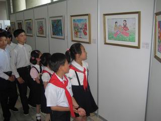 中新網6月4日電 據中國駐朝鮮大使館網站報道,由朝鮮對外文化聯絡委員會、朝鮮金日成社會主義青年同盟、上海市對外文化交流協會共同主辦的《中朝友好年——中朝兩國少兒書畫展》于6月1日“國際兒童節”在平壤的萬景臺少年宮隆重開幕。