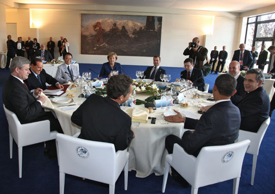當前八國集團的輪值主席是意大利總理貝盧斯科尼。八國集團領導人將舉行工作會議,就核不擴散、反恐以及阿富汗、伊朗和中東問題等廣泛的全球性議題進行磋商。本屆峰會期間,八國集團將在貿易問題上與中國、巴西、印度、墨西哥和南非等發展中五國以及埃及展開商談。