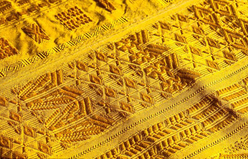圍巾用了100萬只來自馬達加斯加的雌性蜘蛛,它們吐出的絲出名金黃及堅韌。這些蜘蛛無毒,工人小心地將它們分開擺放,以防它們吃了對方或逃走。織布工人然后抽出掛在蜘蛛吐絲器的細絲,而每只蜘蛛可以吐出達400碼(約365米)的金線。每個器具的24條細絲接著會以手搓成一條線,然后結合另外3條這樣的線再搓,便可以用來編織。