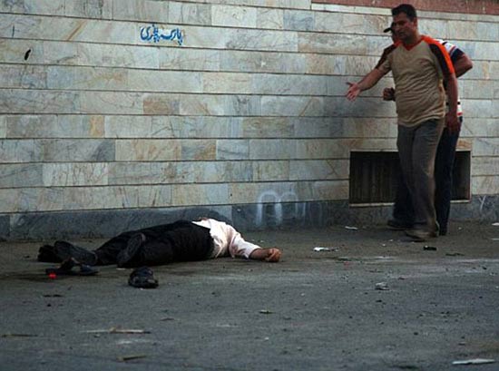 據(jù)英國(guó)《泰晤士報(bào)》、《每日郵報(bào)》、美國(guó)《時(shí)代》雜志6月18日?qǐng)?bào)道,伊朗大選后的騷亂已經(jīng)進(jìn)入第5天,大約有50萬(wàn)抗議者涌上街頭,抗議大選結(jié)果。遠(yuǎn)在韓國(guó)參加世界杯資格賽的伊朗國(guó)家隊(duì)球員也在比賽中戴上綠色腕帶力挺穆薩維。但令人感到恐怖的是,根據(jù)微博客Twitter上發(fā)布的照片,德黑蘭街頭近日出現(xiàn)被打死的抗議者的尸首。