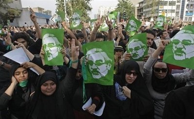 18日,幾萬名佩戴綠色標志物的穆薩維支持者,高呼口號向德黑蘭一個主要廣場出發(fā),參加一年一度的“圣城(耶路撒冷)日”集會。“圣城(耶路撒冷)日”是伊朗每年舉行的反對以色列、支持巴勒斯坦的大會。伊朗總統(tǒng)內(nèi)賈德將在此次大會上發(fā)表演講。