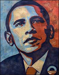 中新網(wǎng)1月9日電 美國(guó)國(guó)家肖像館收藏了一幅當(dāng)選總統(tǒng)奧巴馬的經(jīng)典肖像。這幅由洛杉磯街頭藝術(shù)家費(fèi)爾雷繪制的奧巴馬肖像由紅、白、藍(lán)三色組成,頗有安迪·沃霍爾之風(fēng)。