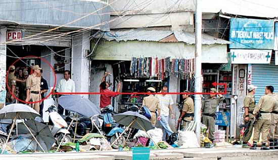 印度警方聲稱,7月23日在印度東北部比鄰緬甸的曼尼普爾邦一個市場內的一次追捕行動中,一名名叫桑吉特的27歲的男子朝警察開槍,隨后警方將其擊斃。當地政府認為桑吉特是一分裂組織成員。但是據一名匿名記者披露的照片顯示,桑吉特看起來似乎沒有攜帶武器,而數名警察趁其不注意將他圍住。警察對桑吉特進行了搜身,而后挾持其到了一家藥店。在藥店門口一名警察掏出手槍將其擊斃。
