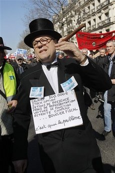 據(jù)悉,這場(chǎng)大罷工的目標(biāo)是迫使法國總統(tǒng)薩科齊在經(jīng)濟(jì)危機(jī)日益加深之際,提高工資、保障工作權(quán)。