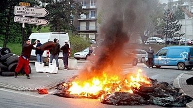 法新社的記者稱,20艘漁船排列在加來港口,抗議者焚燒車胎。工會的領導人稱,20多艘船還封鎖了布倫和敦刻爾克港口。