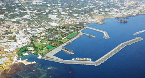 根據當天簽署的合約,韓國海軍將在2014年前投入9537億韓元在西歸浦江汀村一帶48萬平方米(填埋公共水面造地20萬平方米)規模場地上建設可以停泊20多艘艦艇的1950米軍用碼頭。另外還將建造可供2艘15萬噸位的游艇同時停泊的1110米民用碼頭。這里還將修建7500多名軍隊和家屬可以居住使用的配套設施。預計這里將作為韓半島南方的戰略機動戰團母港,承擔海洋運輸道路的保護責任。
