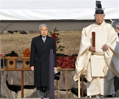 內穿晨禮服外面披著大衣的天皇在陵前做了祭拜,并誦讀了祭文。據宮內廳透露,祭文的主要內容是“保佑國家和國民”。