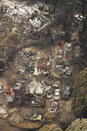 至少700間房屋被毀,墨爾本以北的金萊克鎮周圍一帶就占了500多間,該鎮的商店、汽油站和學校統統被焚毀,至少12人喪生。