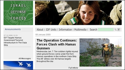 以色列與哈馬斯在加沙地帶的沖突正成為全世界的焦點,而以色列造成加沙地帶大量平民傷亡也招致各方的譴責。面對國際社會的強大壓力,日前以色列國防軍的英文網站上忽然將慣用的男兵圖片換成了大量的微笑的女兵圖片。輿論認為,這是以國防軍正試圖軟化其形象。