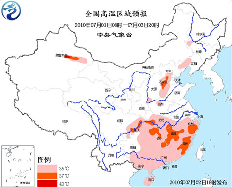 中央氣象臺7月3日06時繼續發布高溫藍色預警: