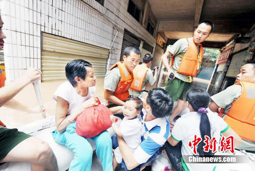 在特大洪水來臨之際,廣安市武警官兵充分發(fā)揮“特別能吃苦,特別能戰(zhàn)斗,特別能奉獻(xiàn)”的精神,積極戰(zhàn)斗在抗洪搶險第一線,與洪水賽跑,與時間賽跑,深入街巷搜尋和和轉(zhuǎn)運被洪水圍困的居民,確保群眾生命安全。 截至記者發(fā)稿時,廣安目前還沒有因為洪水造成的人員傷亡。(完)