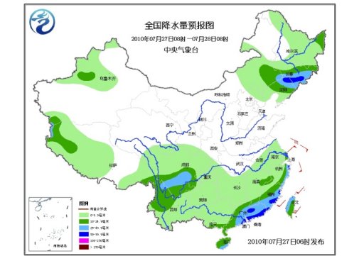 27日08時(shí)至28日08時(shí),新疆西北部、西藏大部、甘肅南部、內(nèi)蒙古東南部、東北大部、江淮大部、江南、華南、西南大部等地有小到中雨或陣雨,其中,吉林中南部、遼寧北部、四川西南部、云南西北部、浙江東部沿海、福建東部和南部、廣東中東部、海南南部、臺(tái)灣西部等地有大雨或暴雨,浙江東部沿海、福建東部沿海、廣東東部等地的局部地區(qū)有大暴雨;上述局地并伴有短時(shí)雷雨大風(fēng)等強(qiáng)對(duì)流天氣。新疆北部、內(nèi)蒙古東部、東北等地有4~5級(jí)風(fēng)。受入海氣旋和西南季風(fēng)的共同影響,黃海南部海域、東海北部海域?qū)⒂?~8級(jí)、陣風(fēng)9~10級(jí)的旋轉(zhuǎn)風(fēng);東海南部海域、臺(tái)灣海峽、臺(tái)灣以東洋面將有7~8級(jí)、陣風(fēng)9級(jí)的西南風(fēng);黃海中部海域?qū)⒂?~6級(jí)東南風(fēng)轉(zhuǎn)6~7級(jí)、陣風(fēng)8級(jí)的旋轉(zhuǎn)風(fēng)。