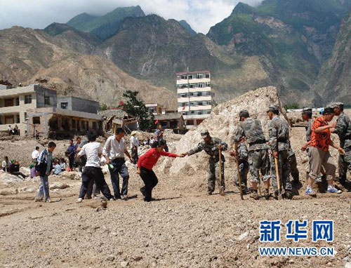 中國紅十字會總會9日向甘肅舟曲泥石流災區派出救災工作組,并再次調撥100萬元救災款,用于舟曲災區食品、飲用水等急需物資的采購,同時調撥價值40余萬元的1600個家庭包至災區。