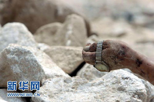 舟曲縣抗災前線黨員干部楊間平指著已看不出本來面目的一地說:“那是南濱河路,被淹得只剩下路燈,這邊就是原來的家屬區(qū),當晚已把一二層全淹沒了。”