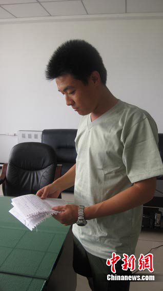 中新網吉林8月10日電(記者 蒼雁)吉林一名消防士兵在抗洪一線利用休息時間寫下篇篇日記。8月10日,記者看到了這本日記,上面不僅詳細記錄了消防官兵在一線抗擊洪水英勇事跡,也還原了洪水肆虐的驚險場面。據了解,這名士兵僅從軍校畢業1個月,就投身抗洪戰場。