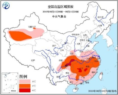 中新網8月10日電 據中央氣象臺預計,今天夜間到明天白天,華北地區仍是降雨的重點區域,河北、山西局地將有大暴雨;同時,南方地區高溫持續,其中 四川盆地東南部、重慶大部、湖南中南部、江西中部等地氣溫可達38~39℃,部分地區氣溫可達40℃以上。