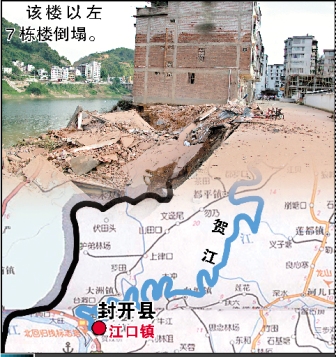據封開縣政府消息,10日下午,位于封開縣縣城江口鎮東方二路賀江一橋至江口鎮實驗廠原職工宿舍樓河岸路段發生滑坡地質災害,導致該區七棟居民樓房倒塌。