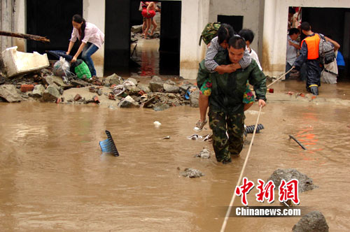 4點05分,歐遠洪教導員率領汶川大、中隊官兵到達銀杏鄉羅圈灣國道K43+000m處,現場組織指揮抗洪搶險工作。按照縣指揮部統一部署,汶川大隊官兵立即展開被困群眾疏散轉移行動,挨家挨戶的清查、搜尋,特別是離河岸較近的群眾,立即轉移確保人員安全。據不完全統計,共安全疏散轉移群眾400余人。