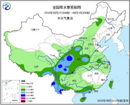 16日,舟曲縣及白龍江流域多云轉小到中雨、局地有大雨,累積降雨量一般有5~15毫米,局部地區降雨量有20~30毫米。