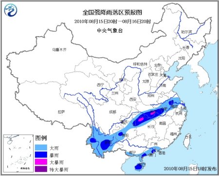 中新網8月15日電 據中央氣象臺消息,中央氣象臺8月15日18時繼續發布暴雨藍色預警:8月15日20時到8月16日20時,重慶東南部、湖北南部和東部、湖南北部、安徽中部、江蘇中南部、貴州西部和北部、云南、廣東南部、廣西南部、海南等地有大雨或暴雨,其中,湖北東南部和湖南西北部的局部地區有大暴雨;上述局部地區并伴有短時雷雨大風等強對流天氣。