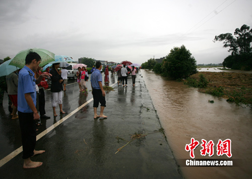 據介紹,眉山市東坡區、丹棱、洪雅、彭山遭遇暴雨到大暴雨,個別地方為特大暴雨。其中東坡區黃蓮埂水庫200.4mm、楊水碾162.5 mm、兩河口水庫141.7 mm,彭山縣保勝121.8 mm,丹棱縣城區137.6 mm,黨仲水庫124mm,丹棱縣石橋鄉135mm,中觀山120mm,梅灣120.5mm,東風106.8mm,雙橋鎮105mm,勝利100m,仁壽縣黑龍灘水庫125.7 mm.14時岷江彭山站水位425.74米,流量6290立方米每秒,青衣江洪雅站水位455.22米流量7700立方米每秒。