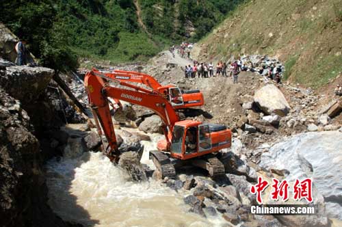 經過全力搶險施工,擂禹路全線共挖方71000立方米,填方12000多立方米,實施爆破10余次,疏浚河道20余處。上午11時,北川通往關內的生命線再次被打通。(完)