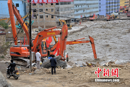 中新網(wǎng)8月24日電 (馬燕清 侯志紅) 8月8日甘肅省舟曲縣的特大山洪泥石流造成穿城而過的白龍江河床抬高,水位提升,淹沒了大半個縣城。如今洶涌的白龍江又有了新變化。