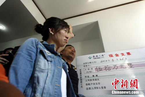 26日10時30分左右,泰康人壽總裁劉經綸趕到遇難者家屬居住的光明商務酒店,親自將寫有50萬元的支票交到遇難者姚鐵強的家屬手中。這是伊春空難發生以來,遇難家屬獲得的第一筆大額賠款。