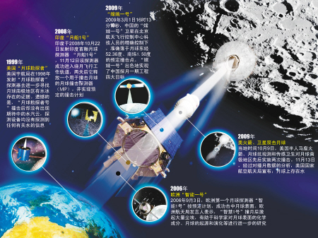 2007年10月24日,我國成功發(fā)射“嫦娥一號”衛(wèi)星。2009年3月1日衛(wèi)星受控撞月,經(jīng)過一年多穩(wěn)定的在軌運行,“嫦娥一號”衛(wèi)星實現(xiàn)了“準時發(fā)射、準確入軌、精確測控、精密變軌、成功繞月、有效探測、取得成果”的一系列目標,圓滿地完成了探月工程一期的工程目標和探測任務。