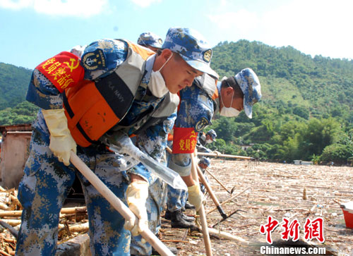 中新網(wǎng)高州9月26日電 (肖德倫 徐苗波)南海艦隊(duì)某陸戰(zhàn)旅在25日派出175名官兵、40輛工程車輛的基礎(chǔ)上,今天又增派200名陸戰(zhàn)隊(duì)員,緊急奔赴100多公里趕赴茂名市搶險(xiǎn)救災(zāi)。