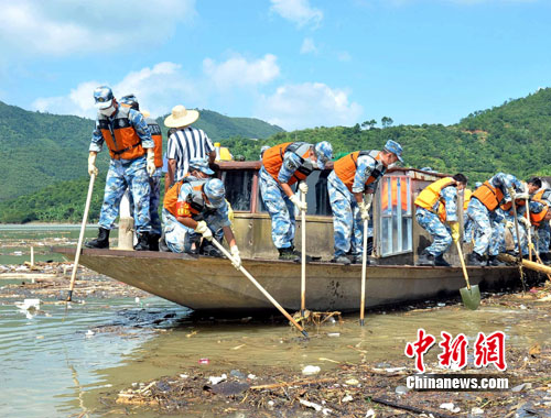 從昨夜開始,前期到達(dá)的部分官兵及工程車輛在高州重災(zāi)區(qū)馬貴鎮(zhèn),疏通道路、搜索失蹤人員、搶救物資;工兵分隊(duì)奔赴信宜市對危險(xiǎn)山體進(jìn)行爆破,部分陸戰(zhàn)隊(duì)員對廣東省第三大水庫高州水庫水面漂浮物進(jìn)行清理。指揮員張文勝上校告訴筆者,目前工程機(jī)械分隊(duì)連夜打通長約1公里被泥石流堵塞的道路,清污的官兵已打撈起數(shù)十噸水面污染物,工兵分隊(duì)正在對爆破體進(jìn)行前期論證。 完