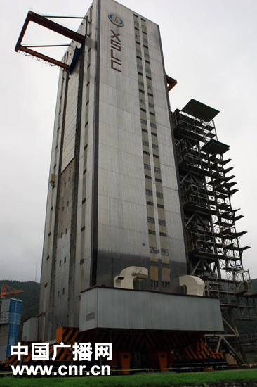 幽靜的山谷中,即將承擔嫦娥二號衛星發射任務的2號發射塔就在記者面前,在這里,記者做得最多的動作就是——仰起頭,仰望這座高塔。