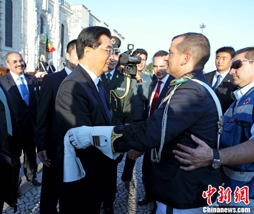 胡錦濤主席于11月6日下午抵達里斯本,開始對葡萄牙進行國事訪問。