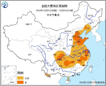中新網12月1日電 中央氣象臺12月1日06時繼續發布大霧藍色預警:今天早晨到上午,遼寧、華北平原、黃淮大部、江淮、江漢中東部、江南大部、西南地區東部、云南西南部等地有輕霧,其中,遼寧西北部、河北中南部、京津地區、山東、江蘇南部、浙江中西部、江西東北部、湖南中部、四川盆地東部、重慶中西部、貴州東部等地的部分地區有能見度不足1000米的霧,局地能見度不足200米。
