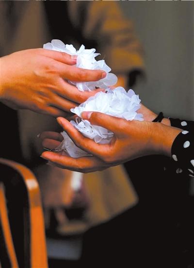 8點02分,哀悼儀式以鳴警報開場,全場肅穆,向遇難同胞默哀3分鐘。隨后,138名代表向遇難者獻上一枝白色的菊花,寄托哀思。整個活動持續20多分鐘,即宣告結束。散場后,一些記者也上前獻花。