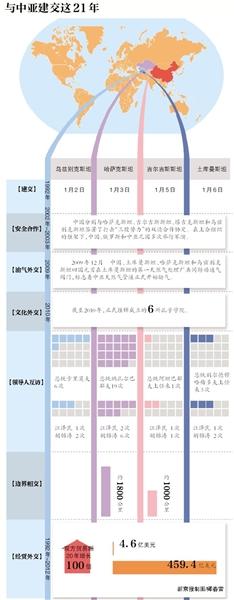 中國是最早承認中亞五國獨立并與之建交的國家之一,也是較早在中亞各國設立大使館的國家之一。江澤民主席和胡錦濤主席都曾經訪問過中亞。