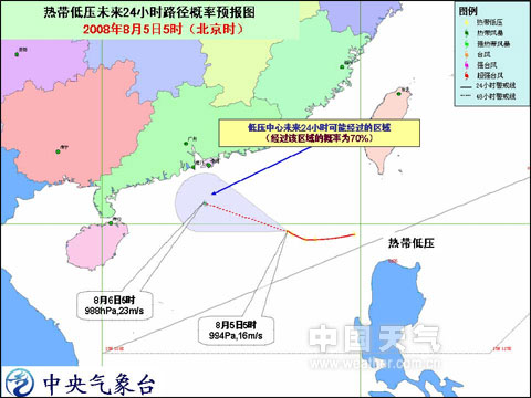 中新網8月5日電 據中國天氣網消息,中央氣象臺今天早晨六時發布熱帶低壓消息: