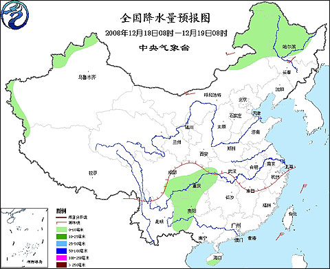 2008年12月18日8時—12月19日8時全國降水量預報圖