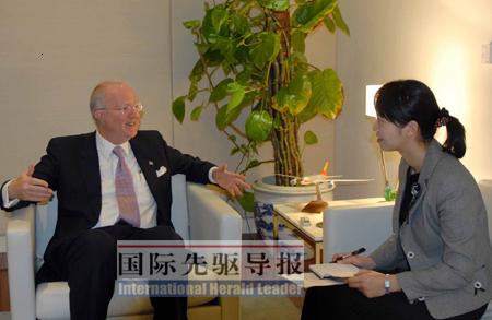國際先驅導報記者熊爭艷發自北京 在美國駐華使館官員陪同下,經過幾道關卡,在新使館大樓的會客室內才見到了兩鬢斑白、神采奕奕的雷德大使。不到半個小時的采訪中,雷德思路清晰,語言幽默,并時常發出爽朗的笑聲。