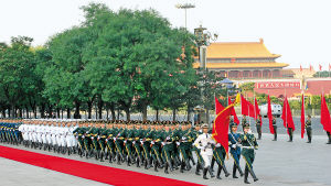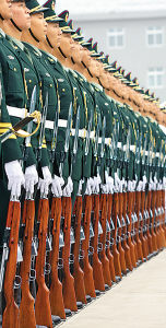 中國人民解放軍陸海空三軍儀仗隊主要擔負迎送外國元首、政府首腦、軍隊高級將領及紀念、慶典等重大國事活動的儀仗司禮任務。禮儀是一個國家文化的精華,軍人執(zhí)行的國禮、軍禮更是一種精粹。三軍儀仗隊建隊以來,先后圓滿完成了外國首腦訪問,香港、澳門回歸政權交接儀式升國旗,奧運會、殘奧會開閉幕式國旗升降、頒獎等3000多次儀仗司禮任務,被中央軍委授予“軍旅標兵”榮譽稱號,贏得了國內(nèi)外公眾和輿論的廣泛贊譽。朱民、劉桂利、張力攝影報道