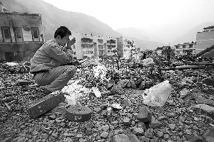 臘月二十三到年三十,是北川傳統(tǒng)的祭拜親人的日子,韓貴鈞介紹,為了滿足災(zāi)民希望到縣城祭拜親人的要求,他們決定北川縣城向當(dāng)?shù)鼐用耖_放,但必須在規(guī)定的道路上進(jìn)行。有些危險區(qū)域,有武警把守和監(jiān)督。
