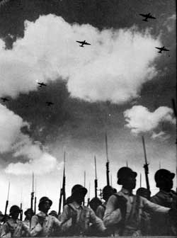 林虎:1949年8月,中央軍委航空局調(diào)我和孟進到北平南苑飛行中隊當(dāng)飛行員,擔(dān)負保衛(wèi)北平的任務(wù)。每天晝夜都在機場保持2至4架戰(zhàn)斗機值班,國民黨空軍聞訊后,沒有敢再來襲擾。8月下旬到9月初,朱德、聶榮臻先后視察了南苑機場。這時,飛行中隊接到了一個令我們意想不到的任務(wù),就是參加開國大典的空中校閱。