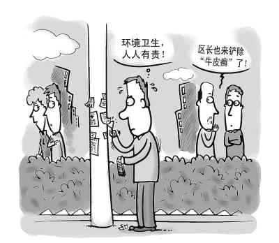 當日上午,濟南經十路槐蔭段,一支特殊的勞動隊伍吸引了眾多行人的目光。從擔山立交橋到槐蔭區政務中心,近4公里路段,沿路看去,都是忙碌的工作人員。他們有的擦護欄,有的鏟除非法小廣告,有的掃綠化帶里的污物,有的蹲下身擦路面上的痰漬。旁邊幾位健身的老人見狀,主動加入到了清理垃圾的行列。在兒童醫院東側,槐蔭區區長楊峰手拿一個噴壺和一把小鏟子,用心清理非法小廣告。看到一家電信營業廳前的電線桿上貼滿小廣告,他先是用噴壺噴水,把紙弄濕,然后用小鏟子快速鏟凈。不多會兒,桿子上的非法小廣告消失殆盡。接下來,他又用抹布把桿子擦得干干凈凈。