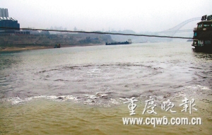 昨上午11時許,朝天門兩江交匯處約6平方米范圍的水域猶如開了鍋的水,突然接連冒泡。這一奇觀引來不少市民圍觀,以為是江里游來了大魚。沸騰的水面散發出陣陣惡臭,熏得圍觀者躲避不及。