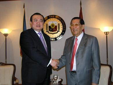 恩里萊對劉建超到任表示熱烈歡迎,并請劉建超轉達對吳邦國委員長和賈慶林主席的問候。他表示,菲中兩國人民的友好交往歷史悠久,菲律賓視中國為友好鄰邦和重要朋友,菲方愿與中方一道推進兩國政治、經貿關系向前發展。