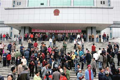昨天早晨不到8點,在習水縣法院大樓前,除了新華社、中央電視臺、中國青年報等眾多媒體記者外,還聚集了大量群眾。“習水出了這樣大的丑聞,很丟臉。”一名當?shù)厝罕娬f,他想看看,究竟是一些什么樣的人這樣喪盡天良。